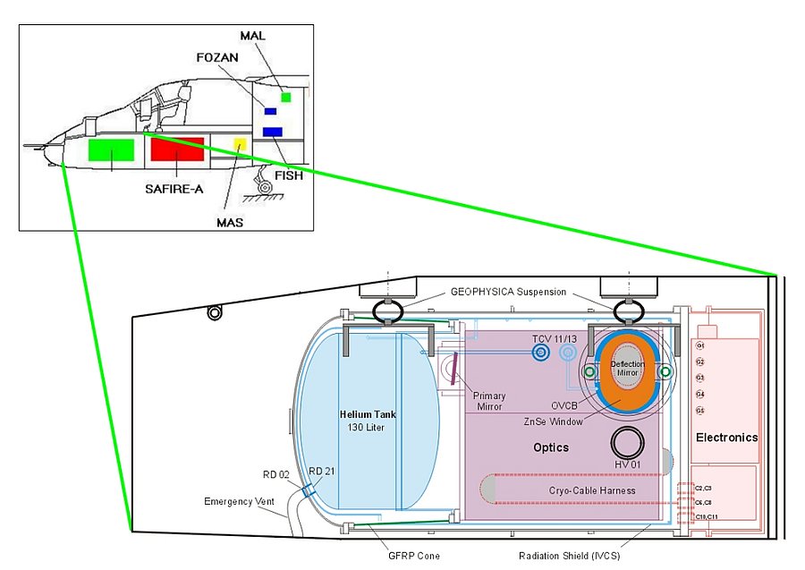 Eine umfangreiche Elektronik dient zur Überwachung und Steuerung des Messgerätes und zeichnet die gewonnen Daten auf. Ein Lagemesssystem bestimmt die genaue Rolllage des Flugzeugs und regelt den Hauptspiegel entsprechend nach, um diese Lageänderungen direkt auszugleichen.