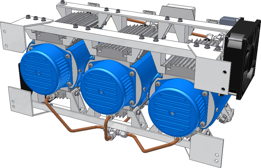 The electrical supply is via the RPDB_AC housed in MIRAH-Rack-2. The primary voltage supply is 115V / 200V, 400Hz, 3 phases. The energy requirement is 650W in the rinsing mode, i.e. permanently, and intermittently for a few minutes to 1200W in collective mode.