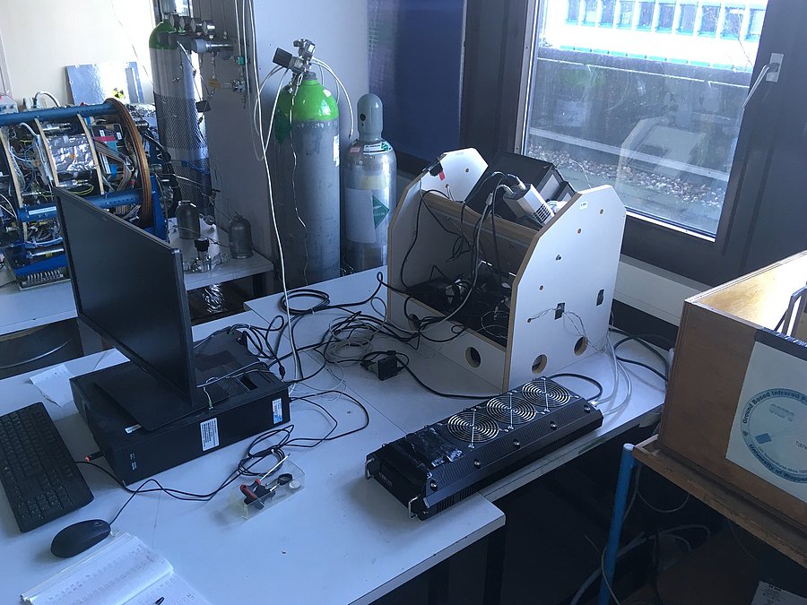 The working group for Atmospheric physics at Wuppertal uses GRound-based Infrared P-Branch Spectrometer (GRIPS) to measure the temperature of the mesopause region at about 87 km altitude in "each" night. Clouds can influence the measurements such as no meaningful observations are possible any more and in some nights no data are available. GRIPS-II and GRIPS-N (see picture) are Czerny-Turner grating spectrometer that measure in the near infrared region between 1,52 – 1,55 µm with a spectral resolution of about 470. GRIPS-N is the follow up instrument of GRIPS-II, which stopped measurements in the middle of 2011. GRIPS-F is a new instrument version with an increased spectral resolution of about 610 and an increased time resolution (see picture). The measurements started in 1980 and have been continuously performed since mid-1987. The GRIPS-F instrument started working in 2015. In total more than 10000 nightly mean temperatures are available until end of 2022 (GRIPS-II/N and GRIPS-F).